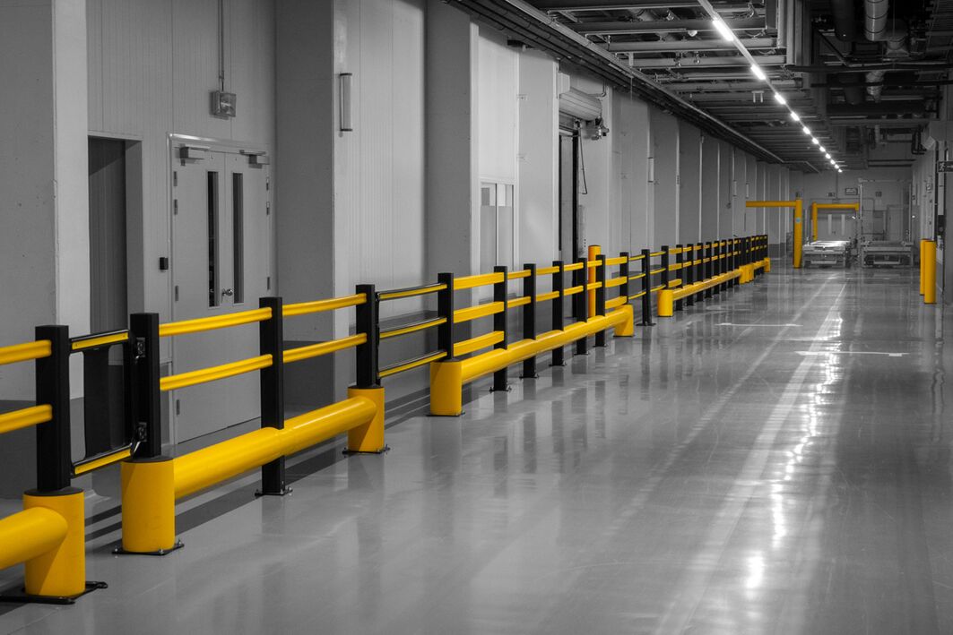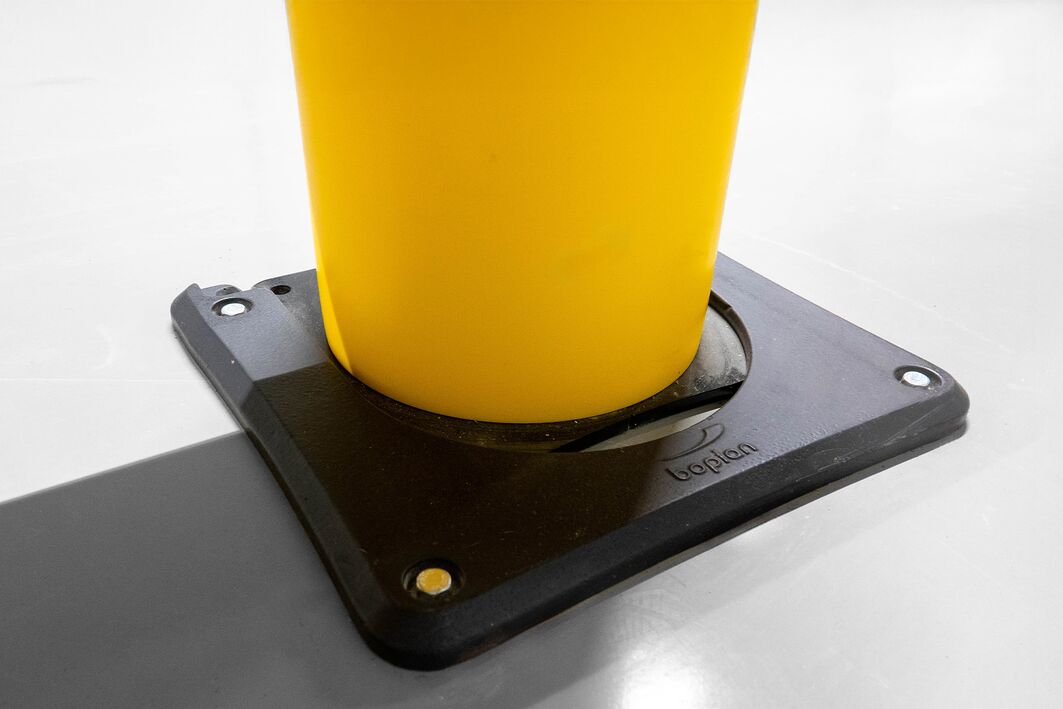 El llamativo color amarillo aumenta la visibilidad en zonas concurridas, mientras que el diseño modular permite adaptar la protección con precisión al espacio disponible.